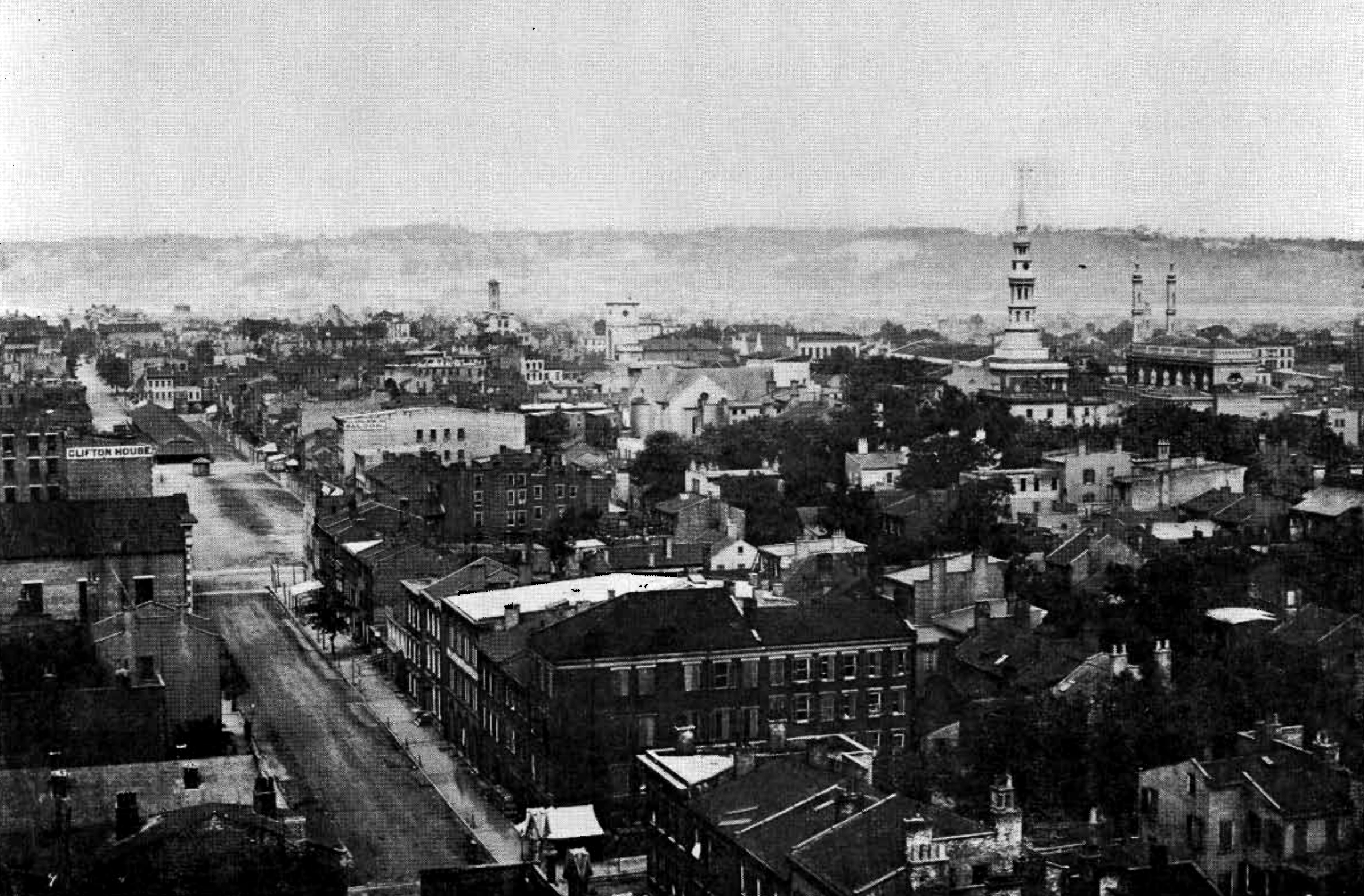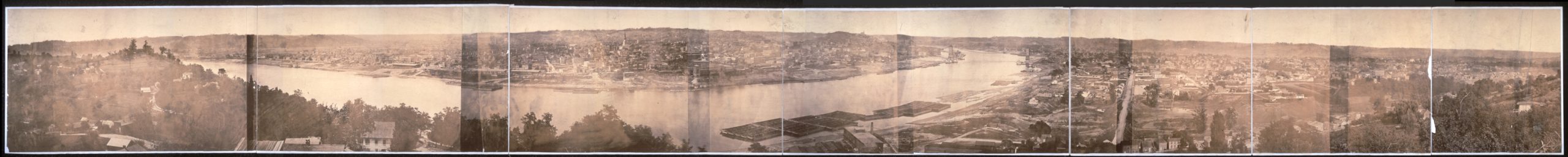 “The panorama shows the entire Cincinnati basin and surrounding hilltops; eastward across Deer Creek to Mt. Adams, southward across the Ohio River to Covington and Newport, westward across the Mill Creek Valley to Price Hill, and northward across the Miami and Erie Canal to the Vine Street Hill and Mt. Auburn. Indeed, the field of the panorama includes over half of the entire corporate area of the city and most of the places where Cincinnatians lived, worked, and carried out their daily affairs a century ago.”