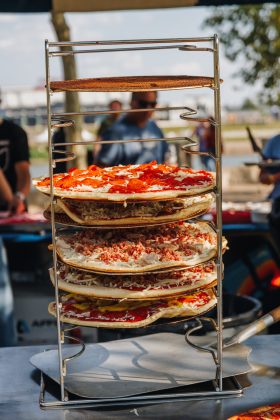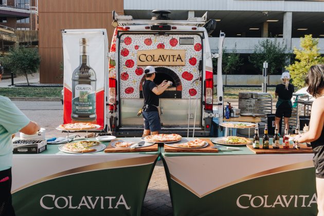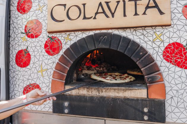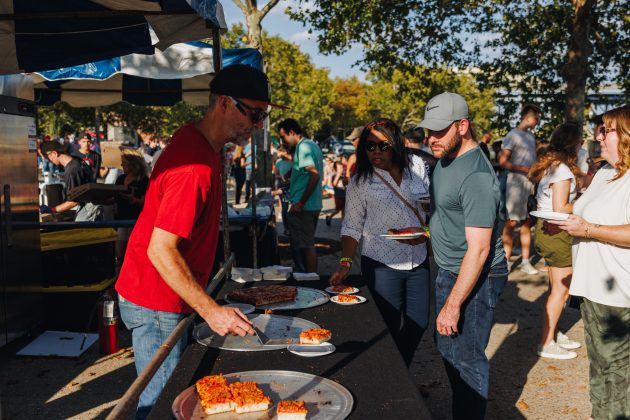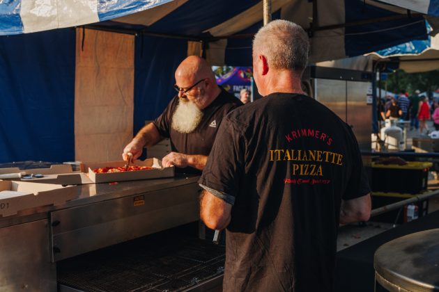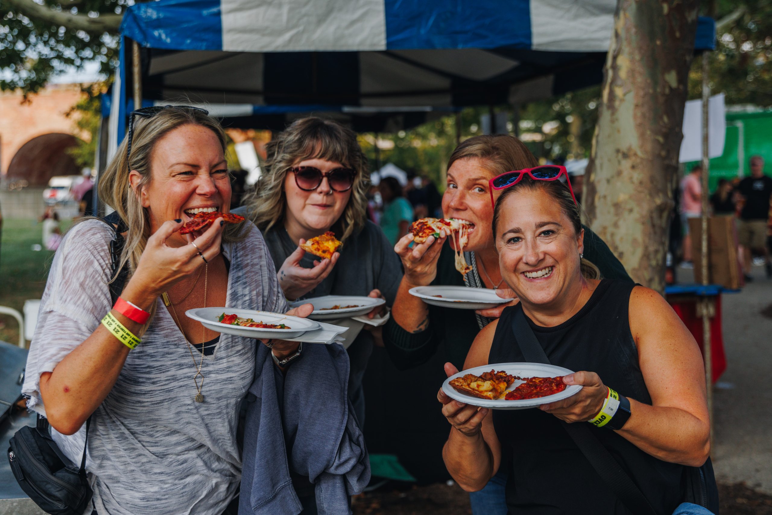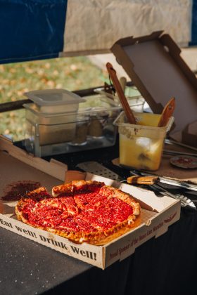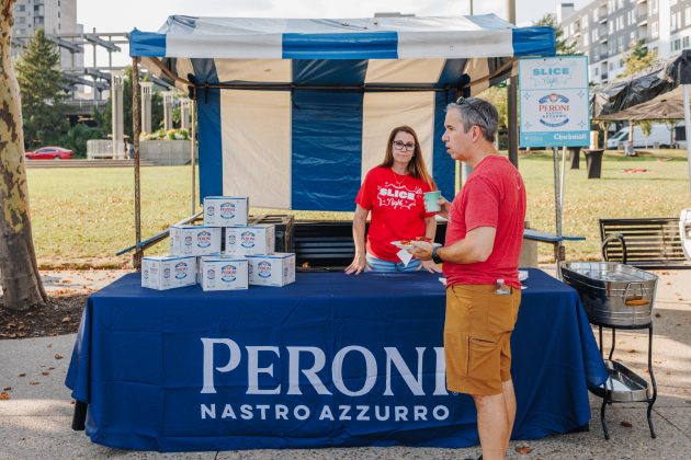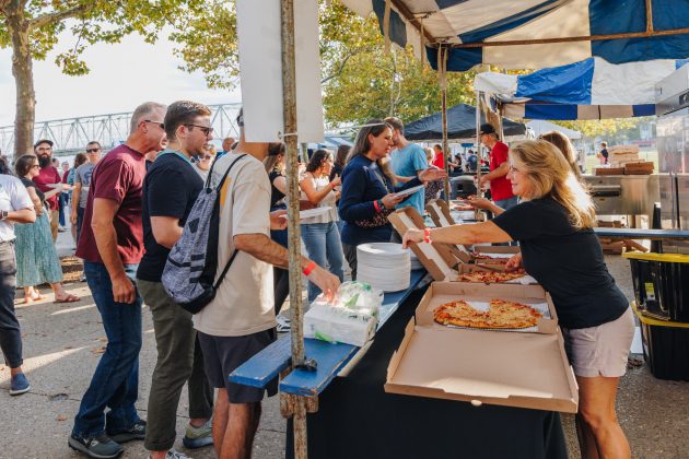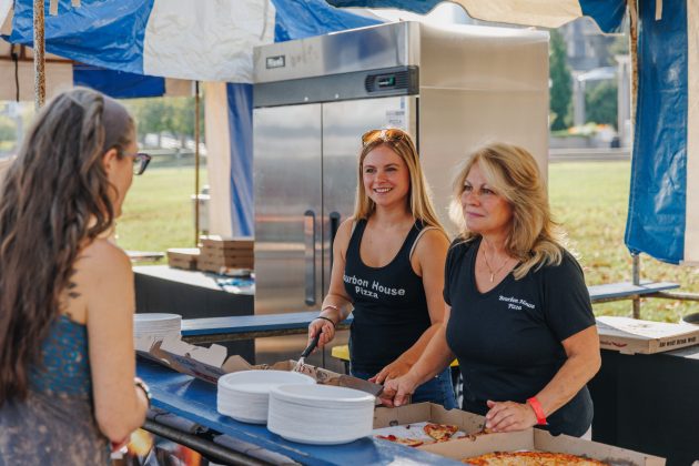 - Participating pizzerias will deliver full pies right to the tent